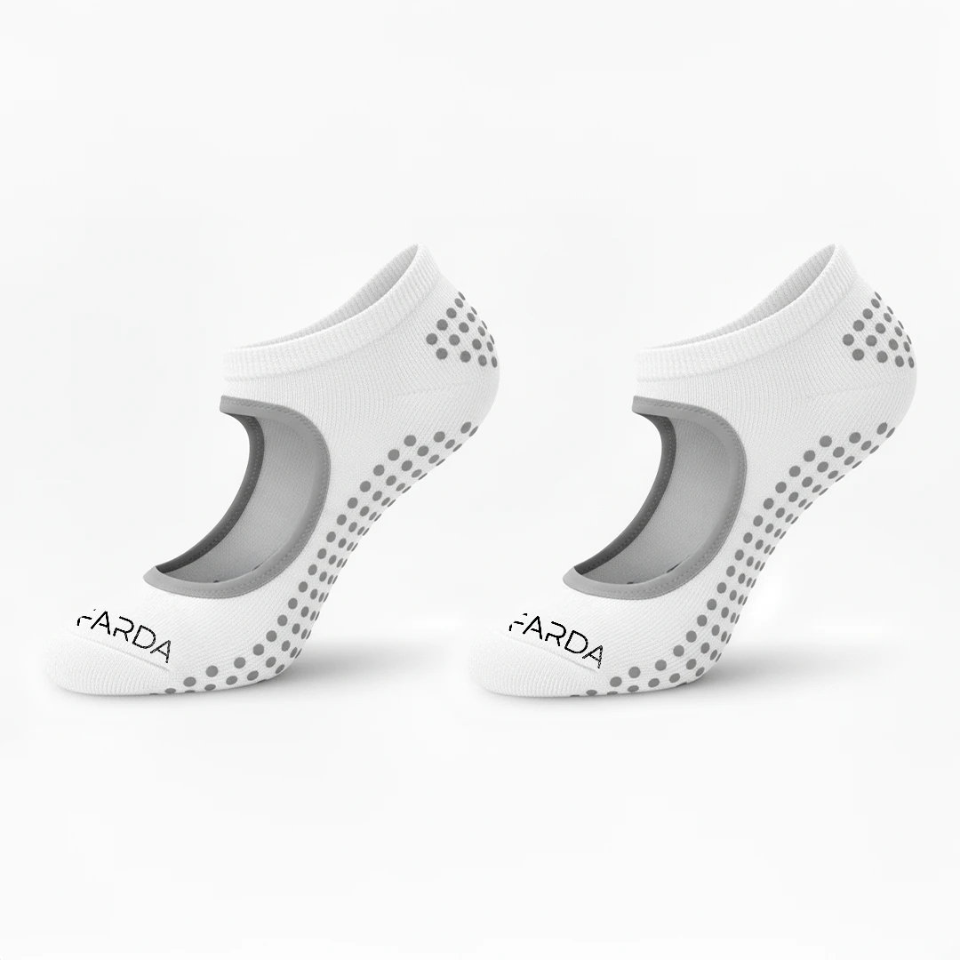 ‎ثبات إضافي‎: ‎مزودة بنقاط سيليكون على باطن القدم من الداخل والخارج، ما يمنحك توازنًا أثناء التمارين ‏سواء على ‏الأرضية الخشبية أو البلاط أو حتى السجاد‎ ‎